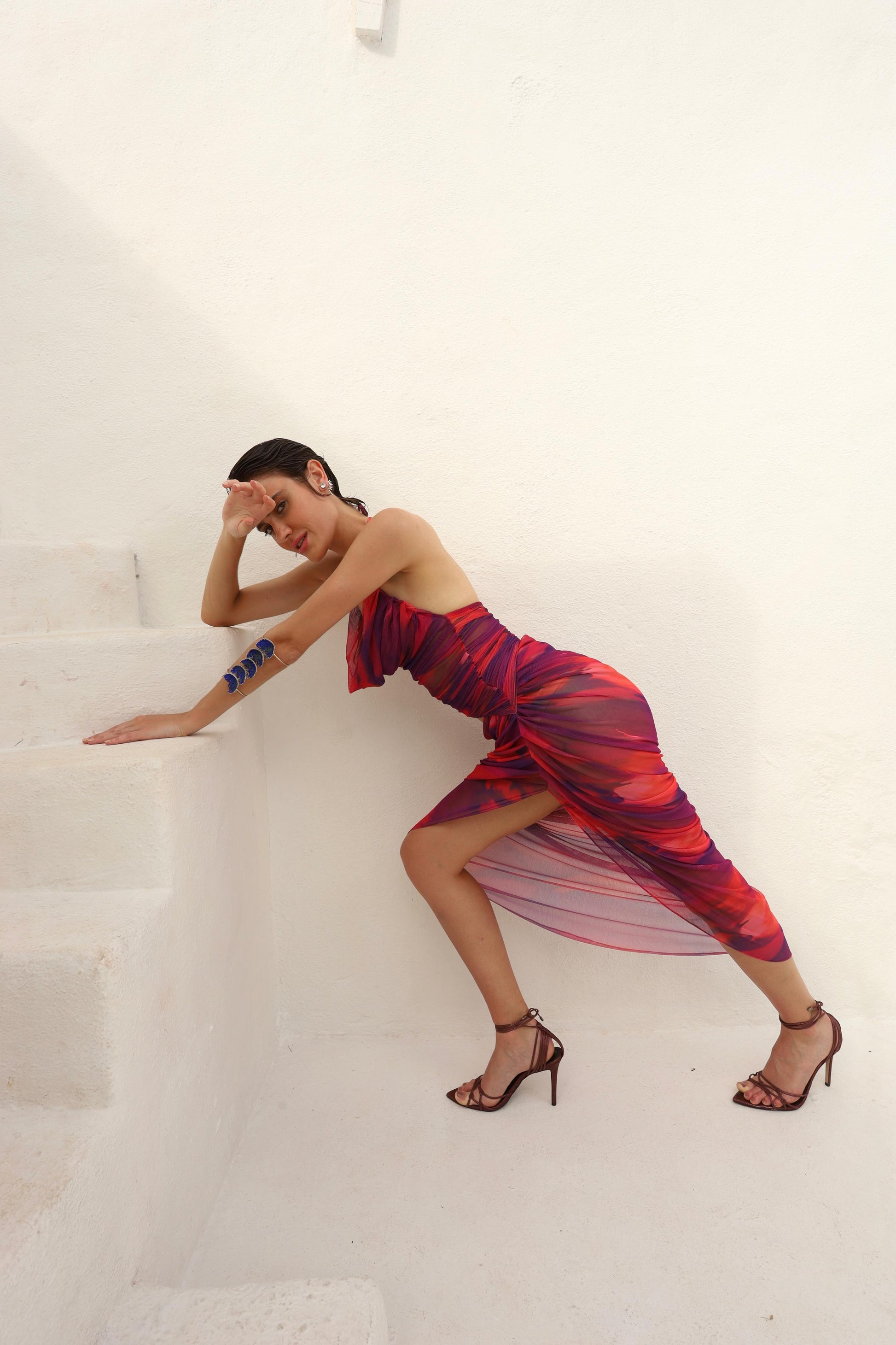 Este vestido longo És Vedra combina recorte delicado na cintura com uma estampa abstrata sofisticada em tule, conferindo um caimento leve e elegante. Ideal para ocasiões especiais onde a sutileza do design e a fluidez do tecido criam um visual refinado e marcante.